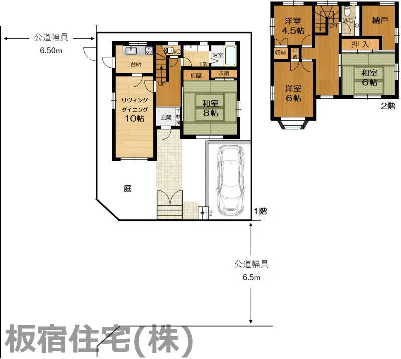 角地 南 間口10m 公道 幅6.5m 西 間口13.1m 公道 幅6.5m |