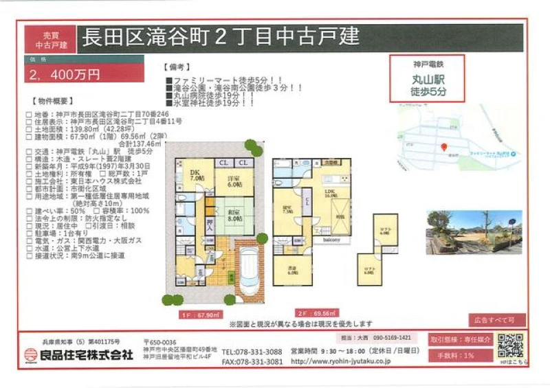 神戸電鉄有馬線 丸山駅 徒歩5分 (400m) 神戸電鉄有馬線 長田駅 徒歩9分 (720m) 神戸電鉄有馬線 鵯越駅 徒歩23分 (1840m) |