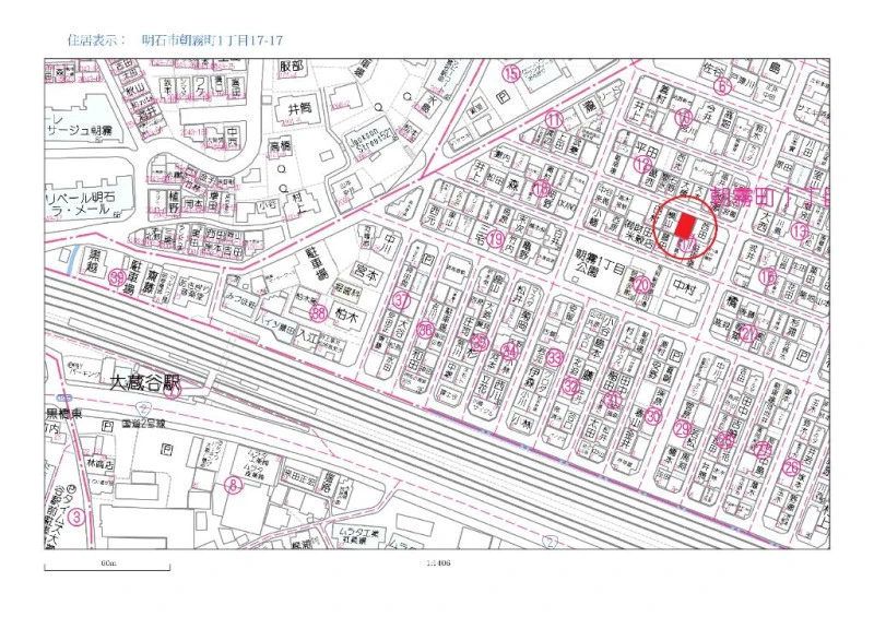 ※地図上の「対象地」は「兵庫県明石市朝霧町1丁目 」付近を示しています。実際の場所ではない場合がございます。詳しくはお問い合わせください。