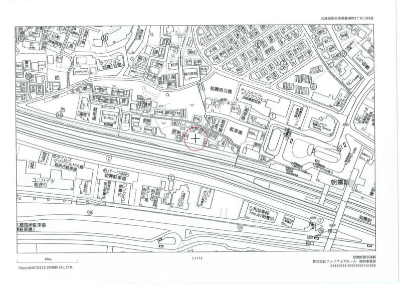 ※地図上の「対象地」は「兵庫県明石市朝霧南町3丁目 」付近を示しています。実際の場所ではない場合がございます。詳しくはお問い合わせください。
