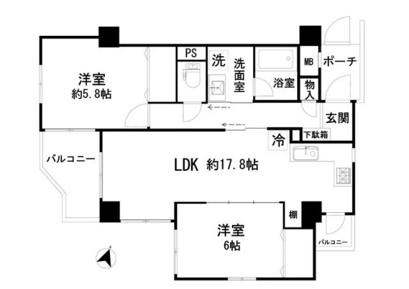 | 間取り | 2LDK | 間取り向き | (角部屋) |
