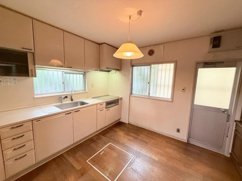 | 設備 | 都市ガス、電気、上水道、下水道、ガスキッチン、システムキッチン、トイレ2箇所、バス・トイレ別、シャワー、洗面所、洗面台、室内洗濯機置場、2面バルコニー、庭、駐車2台可、ガスコンロ設置可 | ||