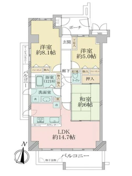 | 間取り | 3LDK | 間取り向き | (角部屋) |
