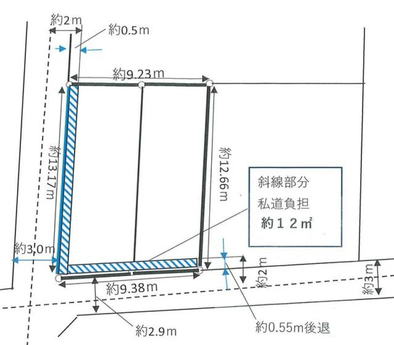 | 土地面積 | 120㎡(公簿) | 私道面積 | 私道負担面積有 12㎡ |
