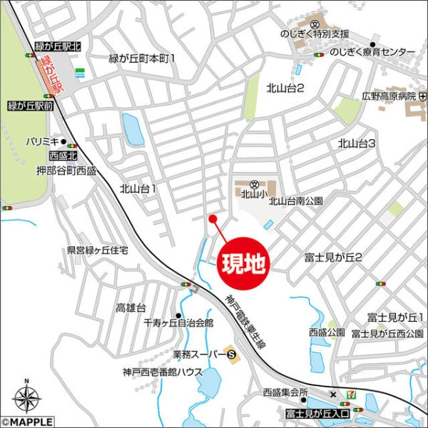 神戸電鉄粟生線 緑が丘駅 徒歩9分 神戸電鉄粟生線 押部谷駅 徒歩17分 神戸電鉄粟生線 広野ゴルフ場前駅 徒歩18分 |
